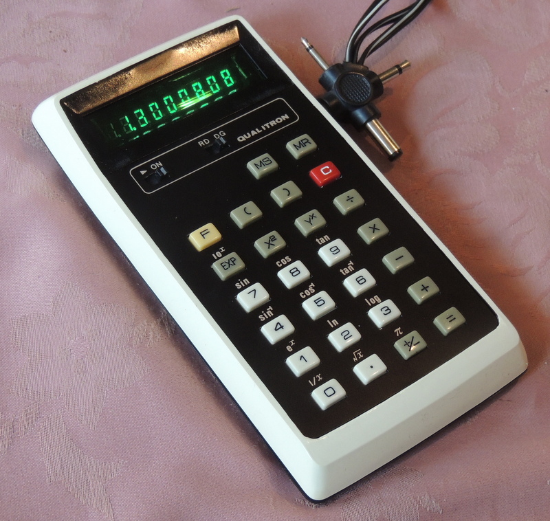 For sale is a QUALITRON scientific calculator model 2450R with a green VFD display. Looks unused !! Completely working . Comes with a pouch, a 110V adapter, a manual and a box.